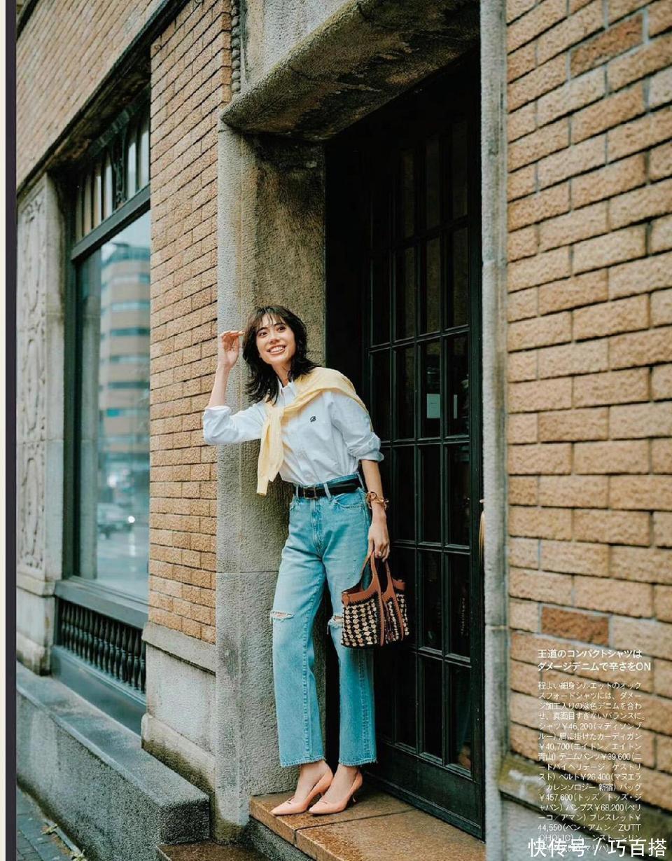 在挑选面试穿搭时,大家可以选择浅蓝色衬衫搭配水洗蓝直筒牛仔裤,脚踩裸色高跟鞋增加干练利落氛围。