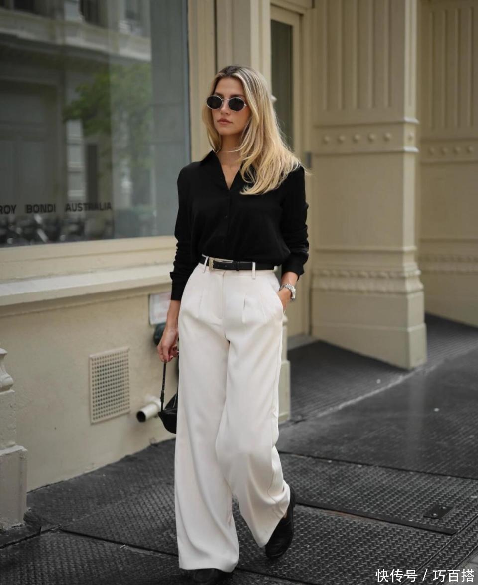 大家可以选择天蓝色廓形衬衫搭配高腰直筒西装裤,脚踩极简小皮鞋或者直接选择金属扣乐福鞋都能给面试官留下深刻印象,用配饰提升精致度,有品味有个性又不会哗众取宠。